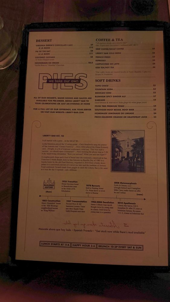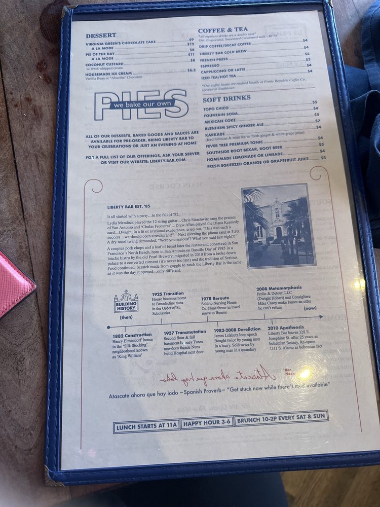 Welcome to Liberty Bar, a unique culinary experience nestled in a beautifully converted Victorian on South Alamo in San Antonio, TX. This Latinx- and veteran-owned establishment specializes in American cuisine with creative brunch and dinner options that guests rave about.